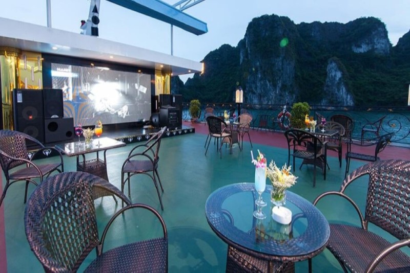 - Quầy bar ngoài trời: Được bố trí trên boong tàu, quầy bar mang đến tầm nhìn 360 độ, hoàn hảo để ngắm hoàng hôn trên vịnh.