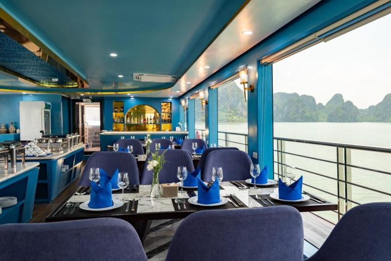 - Phong cách phục vụ chu đáo: Nhân viên luôn chú ý đến từng chi tiết nhỏ, từ việc chuẩn bị bàn ăn đến hướng dẫn các hoạt động trên tàu.