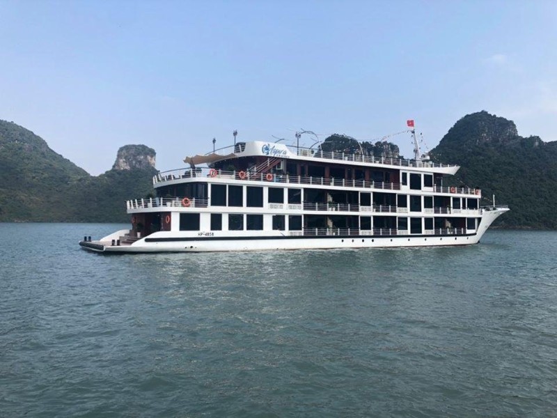 Không dừng lại ở đó, du thuyền còn chinh phục du khách bằng thực đơn ẩm thực phong phú từ ẩm thực Việt Nam truyền thống đến những món ăn quốc tế tinh tế, cùng hàng loạt hoạt động thú vị như chèo kayak, thăm làng Việt Hải hay trải nghiệm spa thư giãn trên tàu.