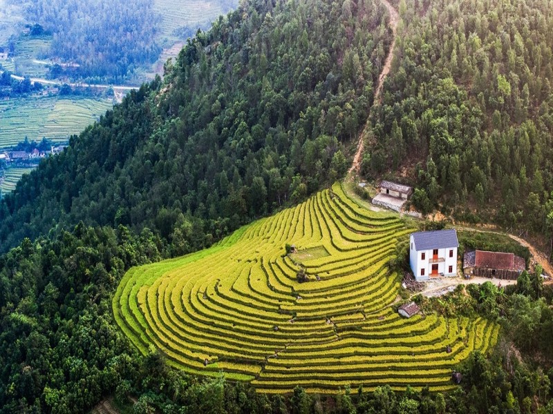 - Những thửa ruộng bậc thang mùa lúa chín, với sắc vàng óng ánh trải dài khắp các triền đồi, là nơi check-in tuyệt đẹp dành cho các tín đồ yêu thích nhiếp ảnh.